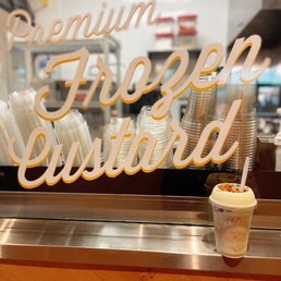 So, there are no pictures of the delicious gouda stuffed avocado sandwich and rosemary salt fries because we gobbled them up as soon as we got home. The breaded avocado was melt-in-your-mouth tasty served on a toasted bun with garlic aioli. There is a full bar of sauces ranging from Korean BBQ, fry sauce and signature with at least 7 more that we didn't try. Korean BBQ was spicy perfection. The fry sauce tasted like Cane's sauce and the signature was very reminiscent of Chik-Fil-A. The service was super fast. We arrived around 3:45 and were out by 4. The ambiance is very clean and everything is well labeled (sauces, condiments and sodas). Booths and tables with chairs are available. Lastly, that frozen custard we brought home? Creamy delicious with a strong vanilla flavor and lots of cookie bits. We haven't tried the mint one, yet.